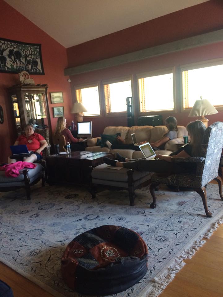 Amenities include WiFi and cell service (although very spotty), a luxurious kitchen and main room, and lots of places to sneak away and write in beautiful surroundings.
